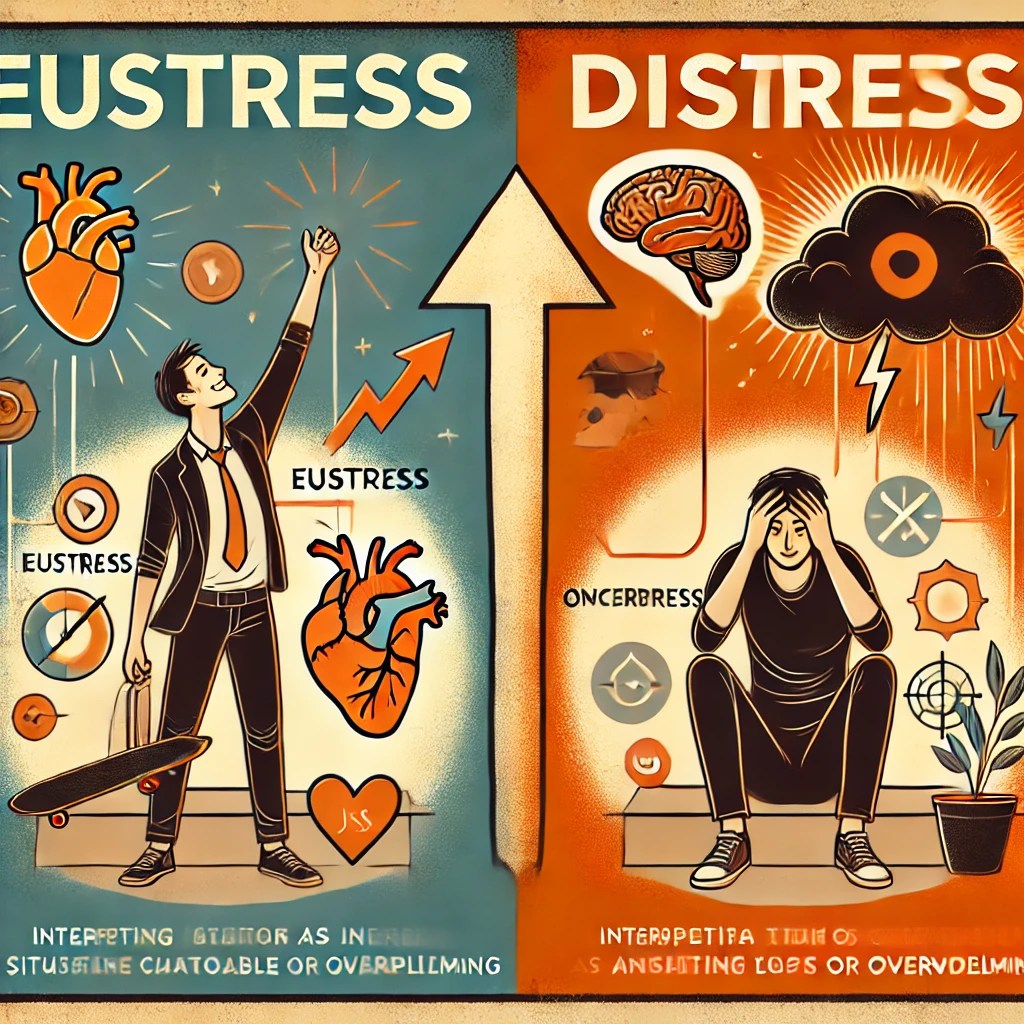 Dependiendo de cómo la persona interprete la situación que enfrenta, si la percibe inicialmente como amenazante y luego la considera controlable, desafiante o abrumadora, se presentará eustrés o distrés.